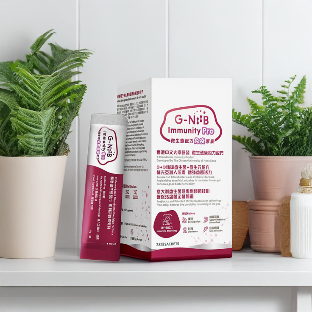產品包含天然活益菌,在臨床數據*顯示這些天然菌種可定居於人類腸道;配方有助於恢復微生態失衡及有助強化免疫力。在新型病毒患者中顯示其臨床益處,G-NiiB Immunity Pro含有經冷凍乾燥處理加上意大利專利包埋技術,以改善菌種生存期的天然益菌和具高溫抗性的益生元的專利配方#,補充人體腸道的有益微生物和改善免疫力。平衡腸道微生態臨床實證,有助提升免疫力中大研發意大利專利鎖菌技術,增強益生菌生存期精準配方,專為亞洲人而設適合人士:關注腸道健康之人士孕婦或在授乳期間,及兩歲以下兒童,請先諮詢醫生意見 28包(備注:訂單滿港幣500元或以上免運費)